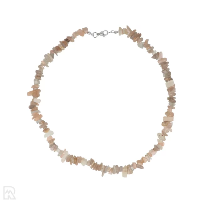 Maansteen is een glinsterende variëteit van veldspaat, bekend om het optische effect dat adularescentie wordt genoemd — een zachte, lichtgevende gloed net onder het oppervlak van de steen. De kleur varieert van kleurloos tot wit, perzik, grijs of blauw, vaak met een karakteristieke glans.